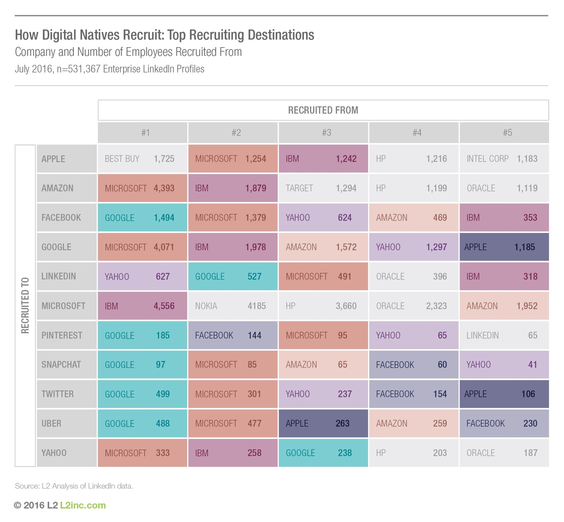 Где высокотехнологичные компании берут таланты? Друг у друга. Но все не равны. ИТ-ветераны уступают своих гениев новым титанам индустрии. Microsoft, по сути, остается главным источником специалистов для остальных технологических фирм. Согласно исследованиям, около 13 000 бывших сотрудников Microsoft сейчас работают на другие 10 инновационных компаний.